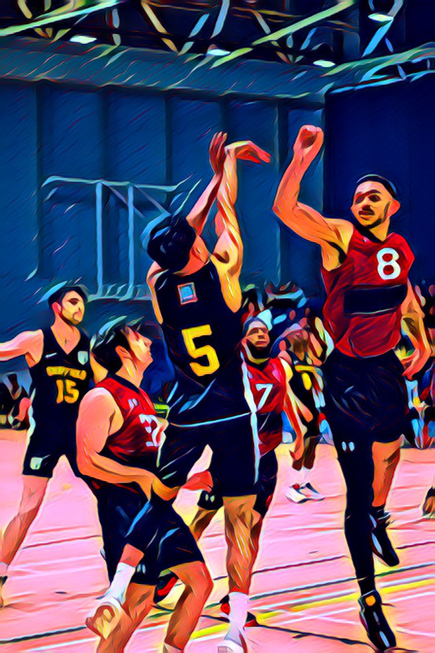 Pradeep Fernandez (#5), guard, shoots difficult contested jump shot with Hallam defender close on the close out